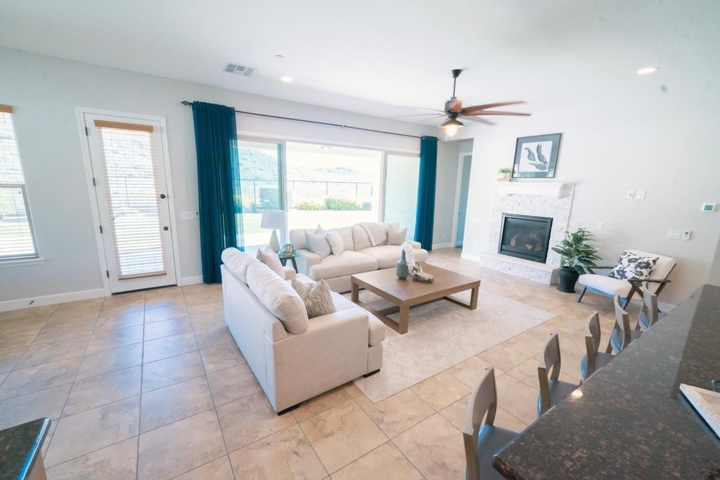 Step inside this 4 bedroom, 3 bath home, with a den that features a gas fireplace, gourmet kitchen, BRAND NEW BEDROOM CARPETS, modern layout ideal for hosting guests in the heart of Vistancia. Each bedroom features large closets, including a 2nd in-law suite. Experience true indoor/outdoor living with expansive double sliding glass doors that open to patio and low maintenance backyard overlooking the mountains. Additional highlights include epoxy-coated garage floor, over head storage, water softener system, built in security system, paver driveway leading to RV gate and rear yard access. The property is available for a 3 month, 6 month, or 12 month lease. Any lease less than 12 months is $3100.00/month. The property is available starting July 3, 2026